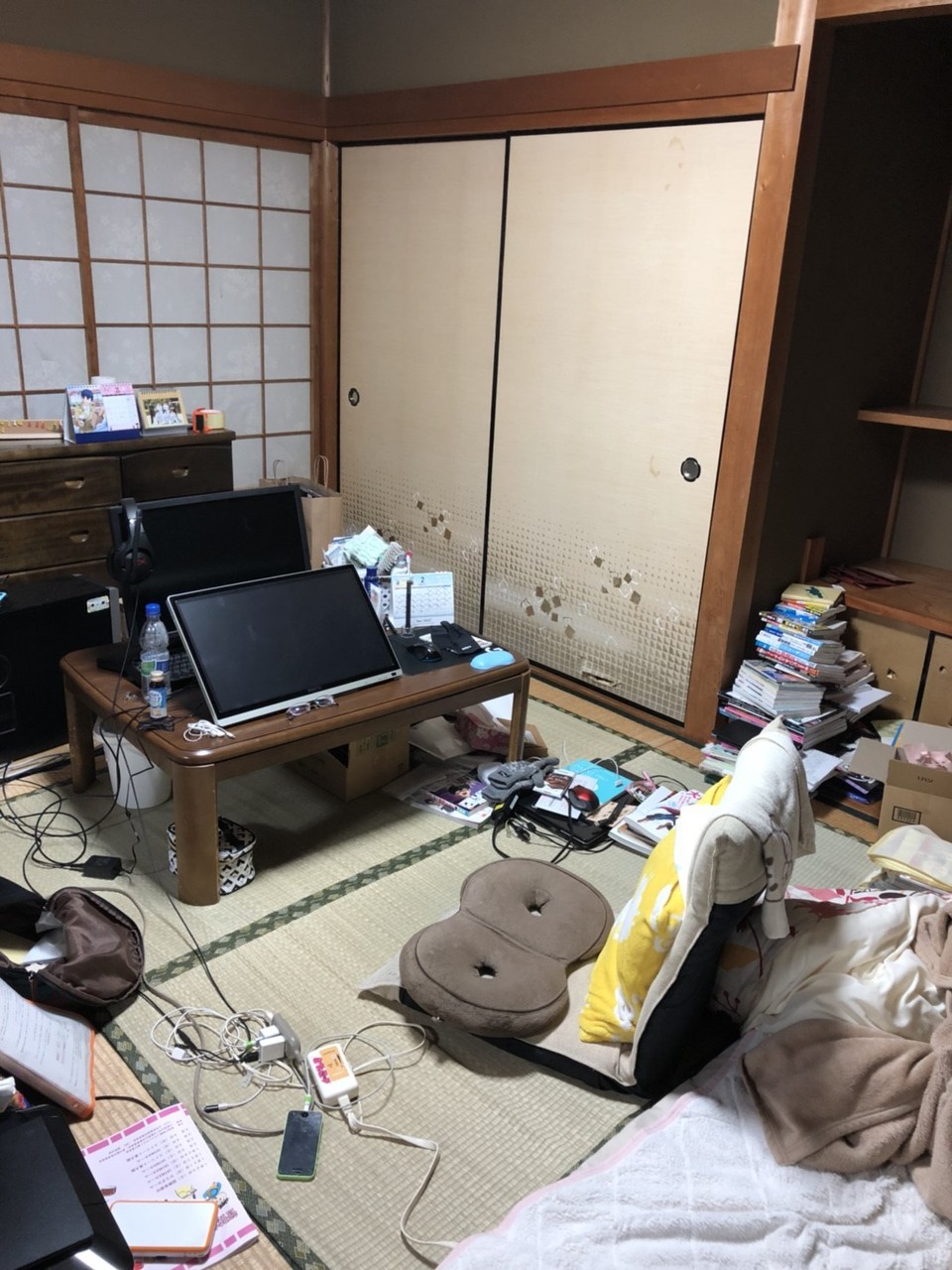 隣の部屋は押入れから出した物で溢れてほんとにこれで片づくの⁈って思いました (泣)