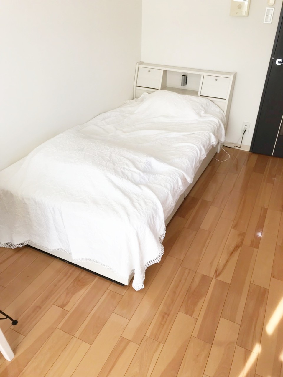 週2回はシーツやカバーを洗うので、その時は布団を半分に折り曲げてベッドカバーをしておきます。