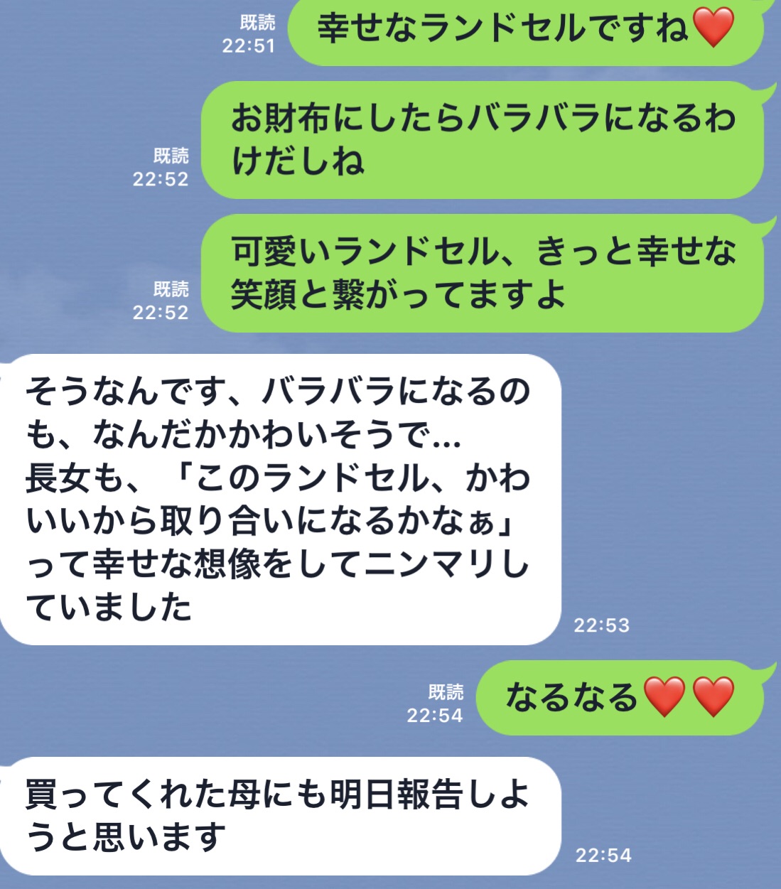 「細かく裁断してお財布にするのは可哀想だね。それよりもこの可愛いランドセルのまま外国のお友達に使ってもらえたら素敵なことね」