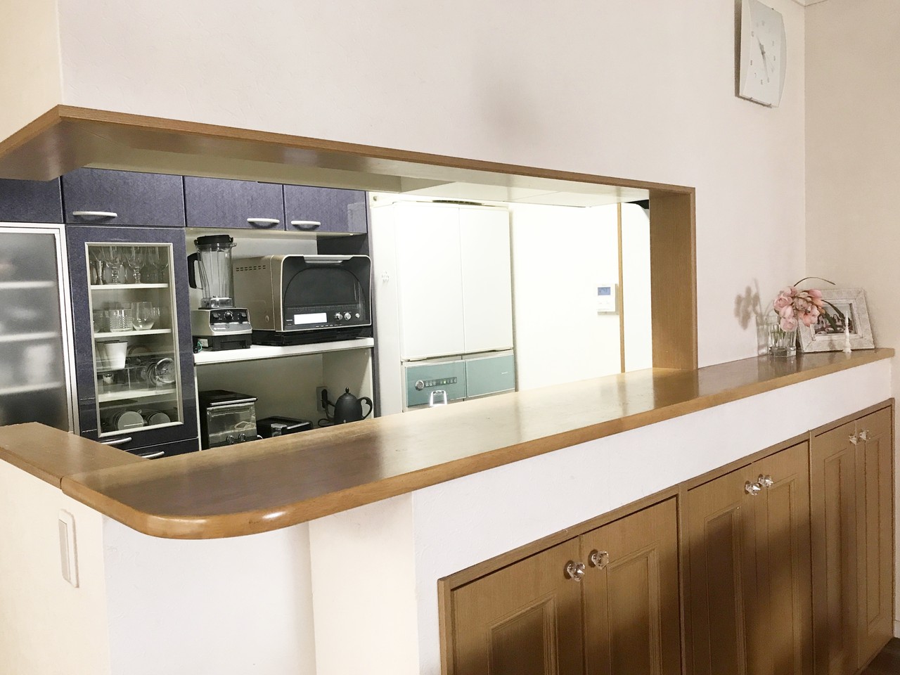 対面式のキッチンでカウンターがありますが、いつもカウンターの上はモノでいっぱいになってしまいます。