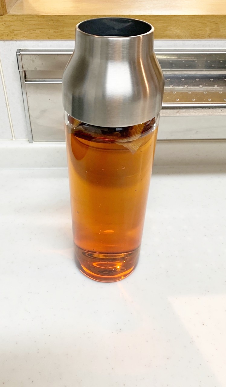 夏の麦茶も水出しです。お出かけの時、水筒バッグに入れて、帰りのバスでグビグビっと飲むと