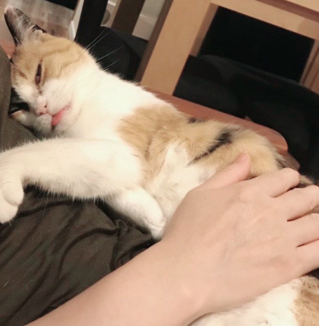 こちらは↓最近ベロをしまい忘れることが多い我が家の猫ちゃん。 笑笑