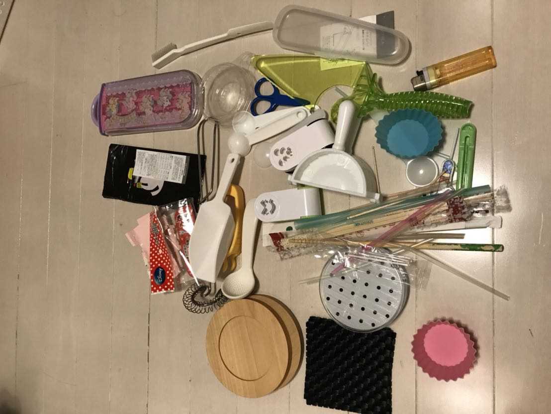米とぎ棒、米とぎざる、サラダスピナー、オイルポット、ゆで卵カッター、キャベツ専用スライサー、茶碗蒸しの器、蓋つき湯のみ、大きな蒸し器、使ってないジューサーなどなど。。。