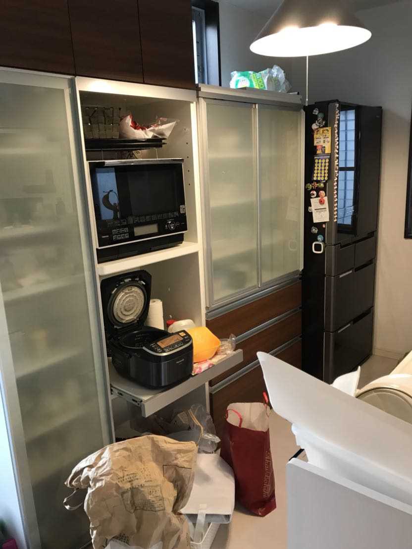 立派なキッチンですが、モノがあふれ調理スペースを圧迫しているので、子供には危険でお手伝いをさせることはできません。