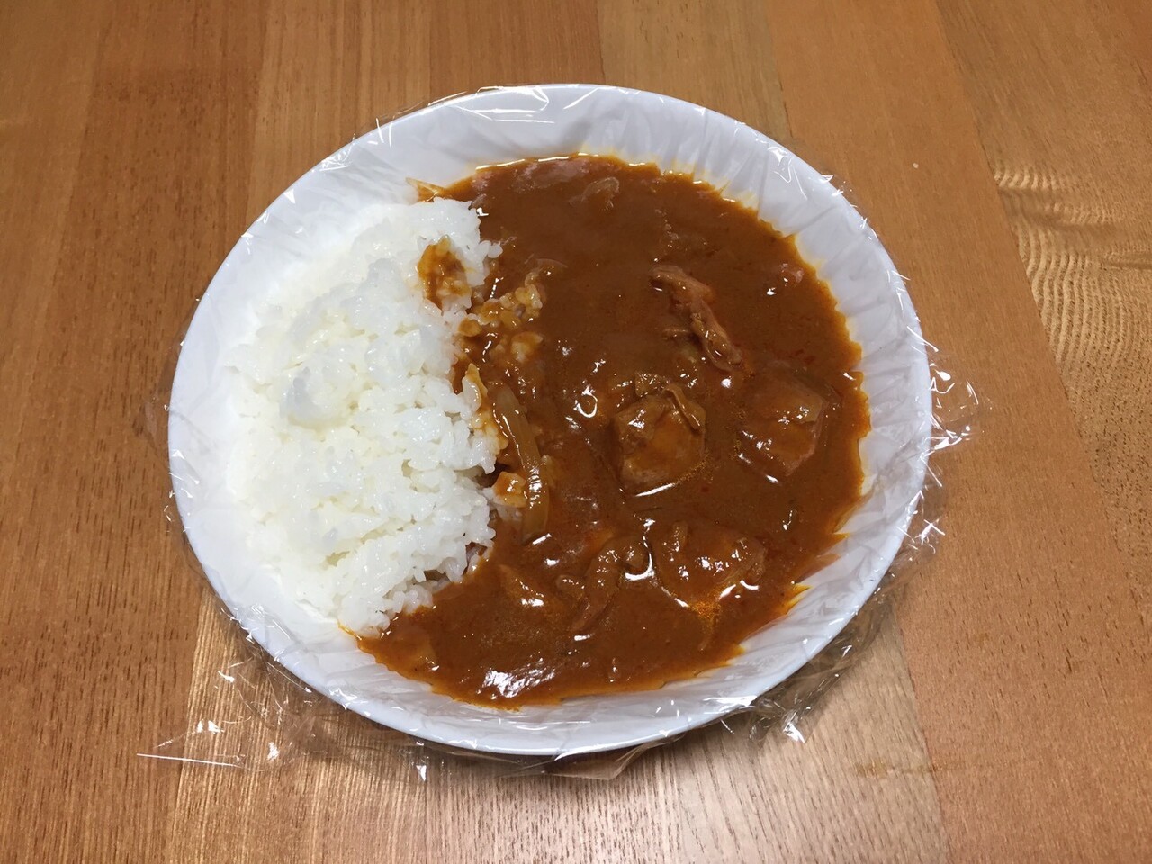 レトルトカレーを温めて、ラップをしたお皿でいただきます。