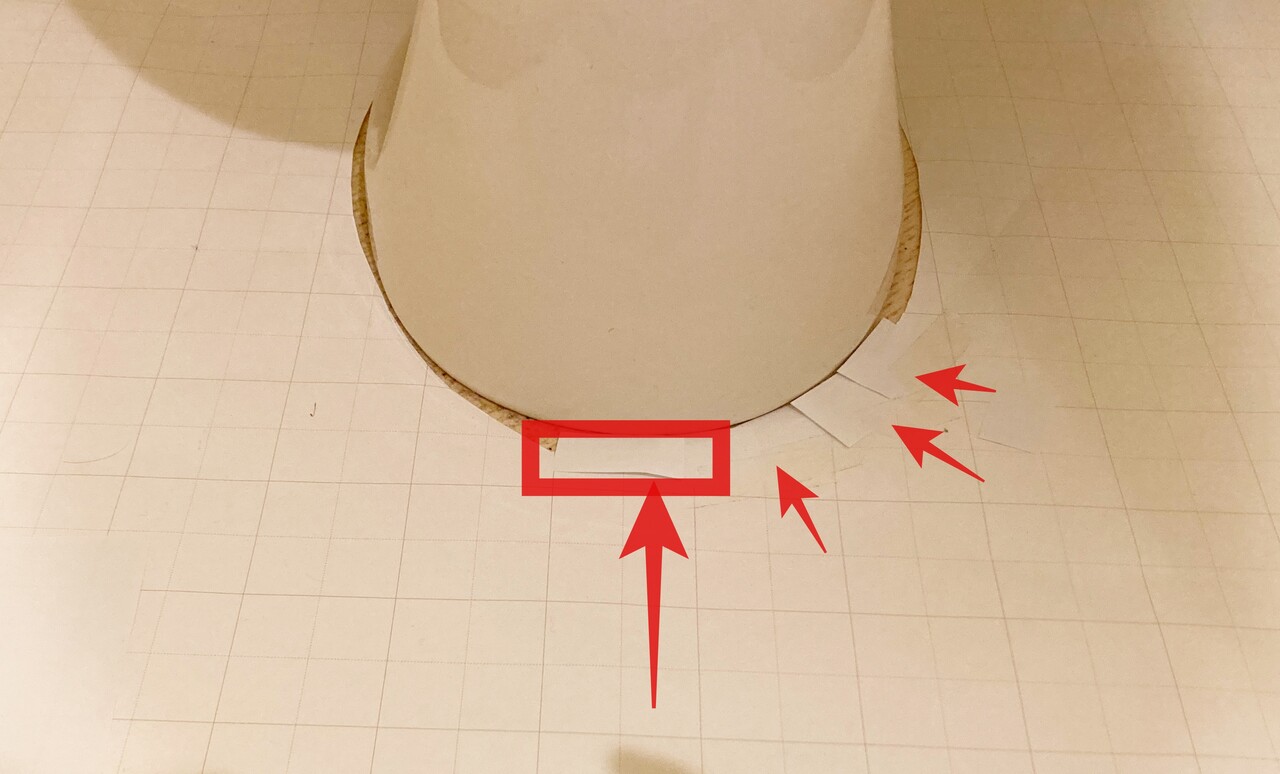 次に、模造紙に合わせ、床材をカットするだけ。