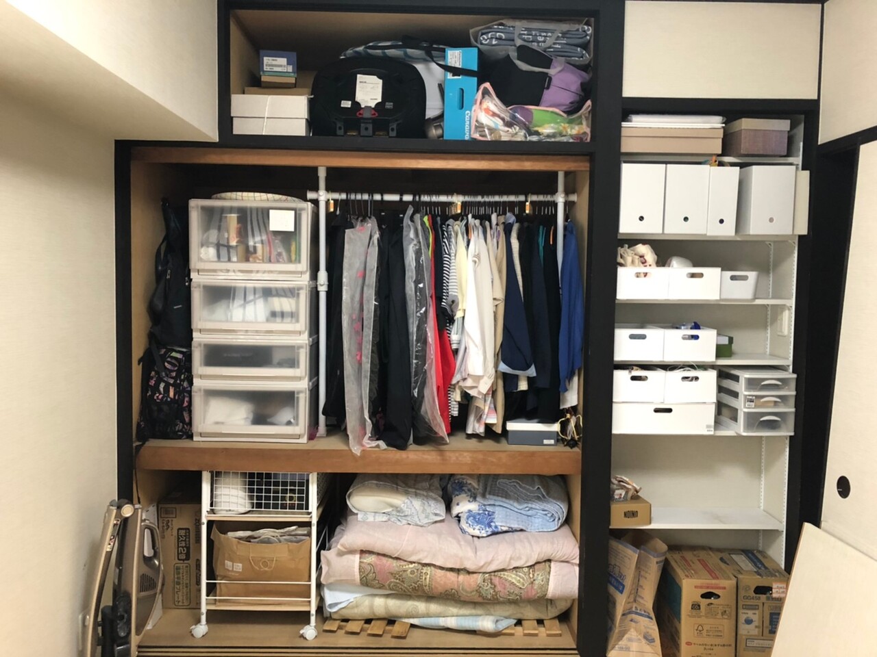 キッチンとリビング、押入れ一つを全出ししましたが、9割、10割収納で終わりました…。家族の協力が得られないので一人でもがいています。