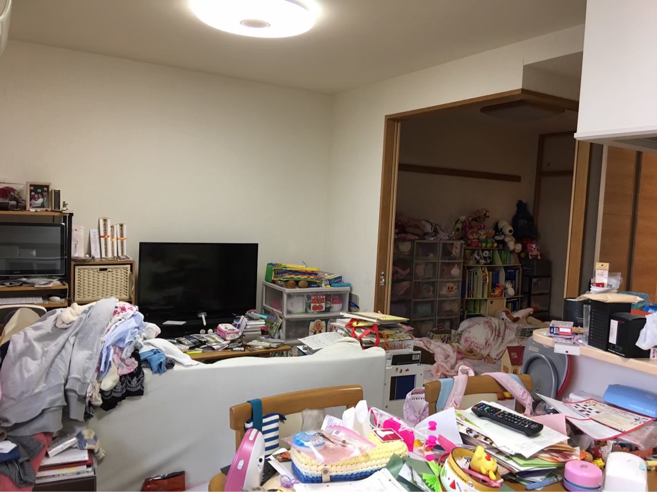 「片づけなくちゃ〜」といつも気になるリビングには、洗濯が終わった衣類やさっきまで読んでいた本やおもちゃ、使いかけの文房具、確認したい書類など、