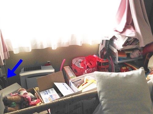 赤い矢印のところのコンセントからジリジリと煙が出て発火したことがあったんです。