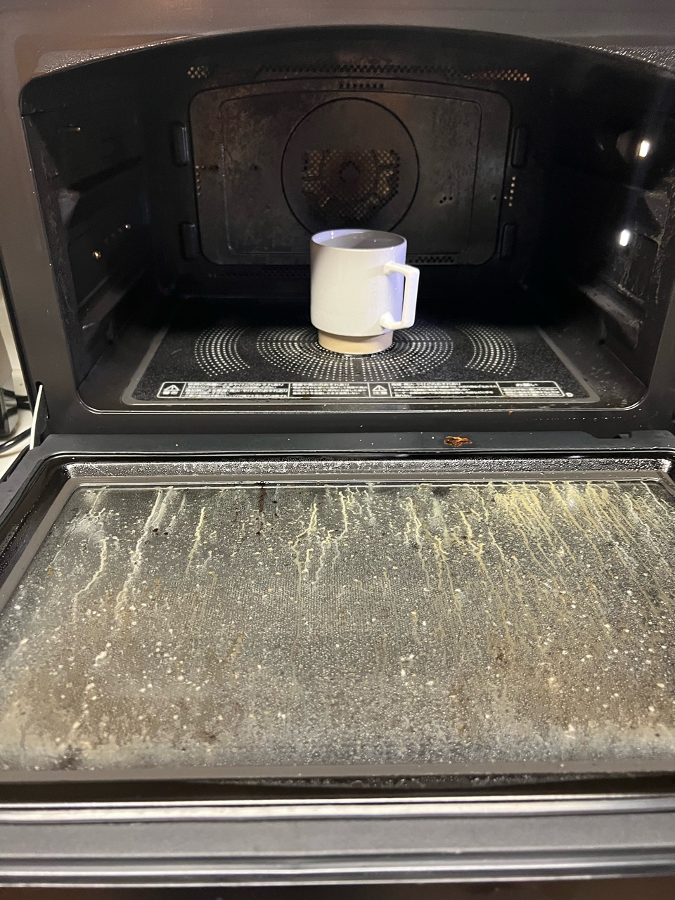 丸鶏、ローストチキン、ラザニアと、オーブンレンジをガンガン使ったら、庫内は油でギトギトです!このままだと、プリンや茶碗蒸しなど、繊細な味付けの料理にニオイも移ってしまいます。