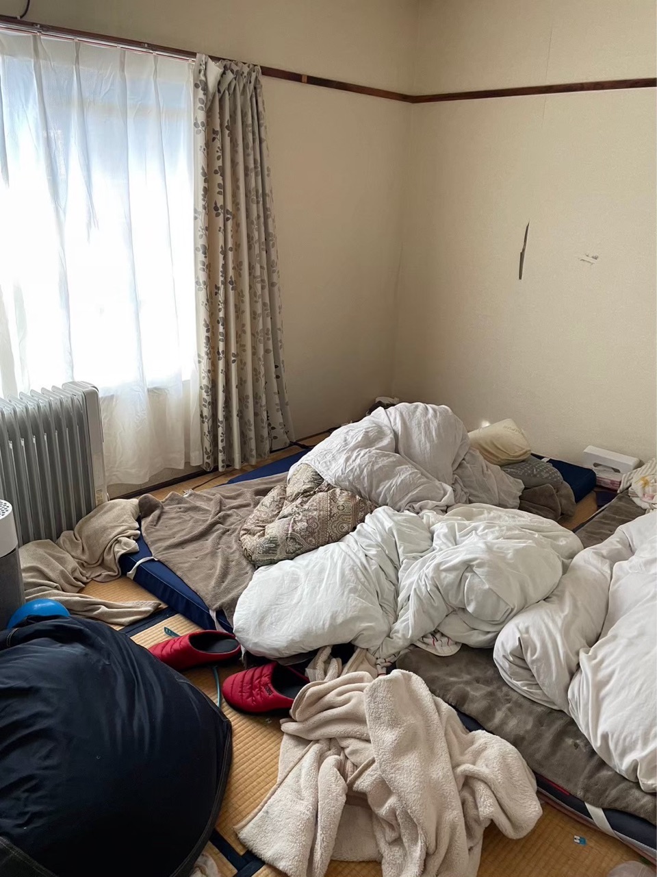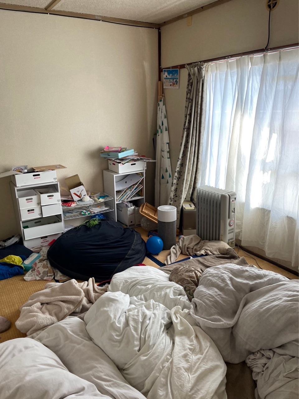 昨夜は息子が自分と妹の布団を敷いてくれました。