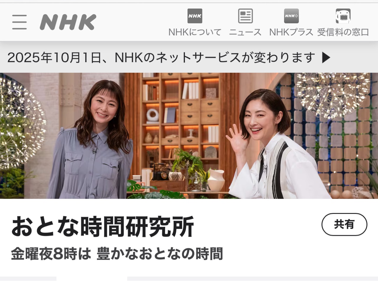 さらに同日の夜8時からは、NHK Eテレ『おとな時間研究所』にて、