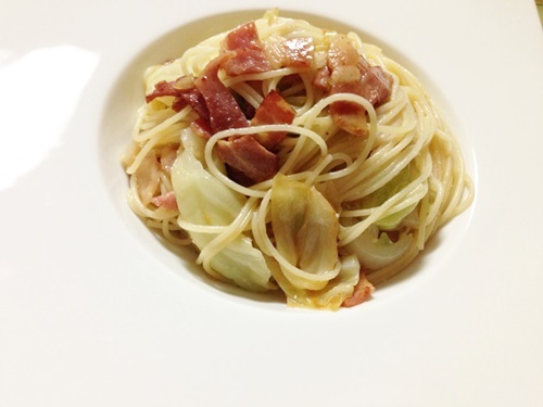 ベーコンとキャベツのペペロンチーノ