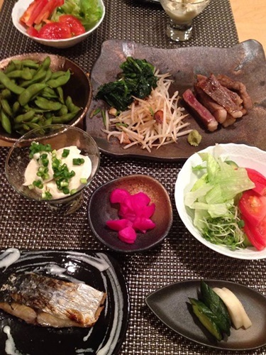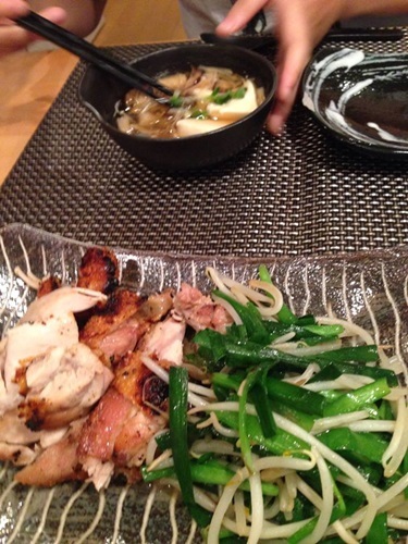 まずは晩御飯 この日はカツオのたたき と鶏のグリル焼き