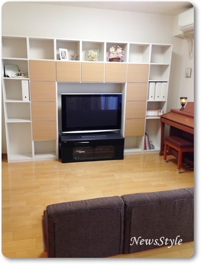 壁面収納は飾り方を変えました。可愛いモノしか見せませんよ。