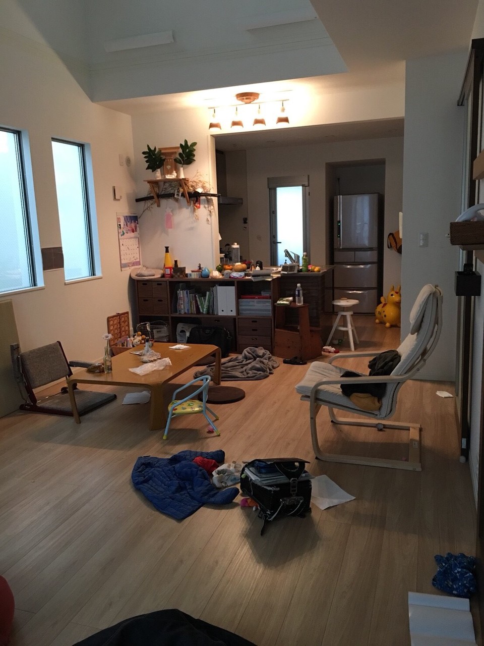 旦那様の散らかったお部屋はスルーして、子供部屋、リビング、洗面所、 玄関を完璧な状態に片づけましょうね!とスタートしました。