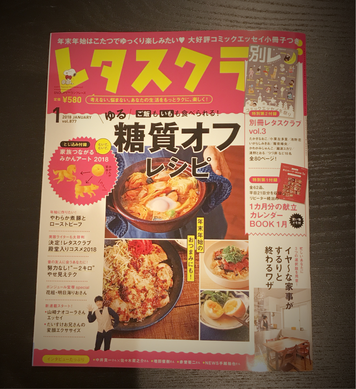 他には、お正月にはまりそうなみかんアート🍊、お正月休みのあとで必須的な糖質オフのレシピなどなど『レタスクラブ』さん、盛りだくさんです!