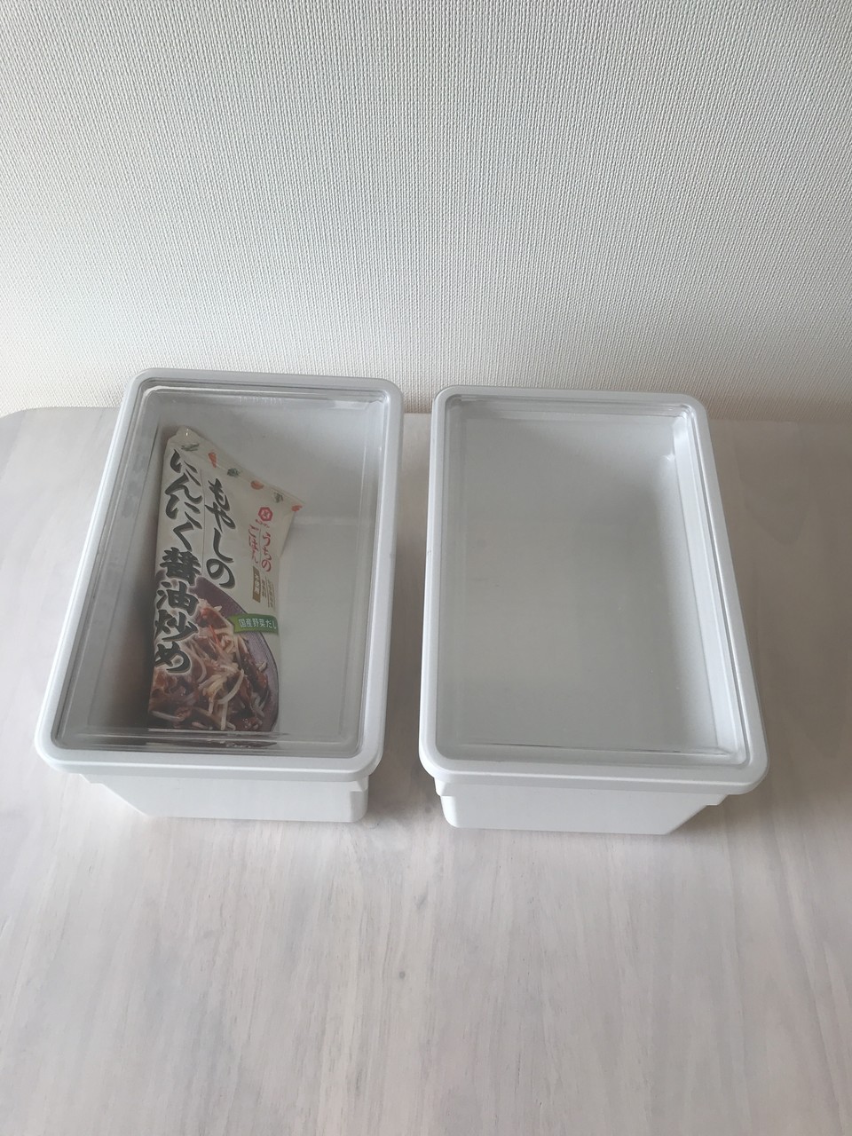 パスタや乾物をまとめて入れる、乾物ストッカー6リットルは、横に寝かせて入れました。