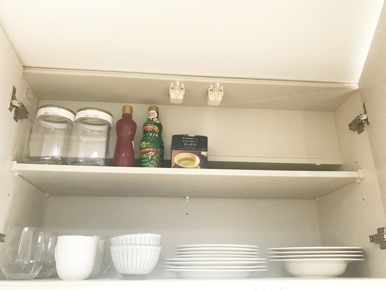 そして、吊り戸棚には食器を収納。