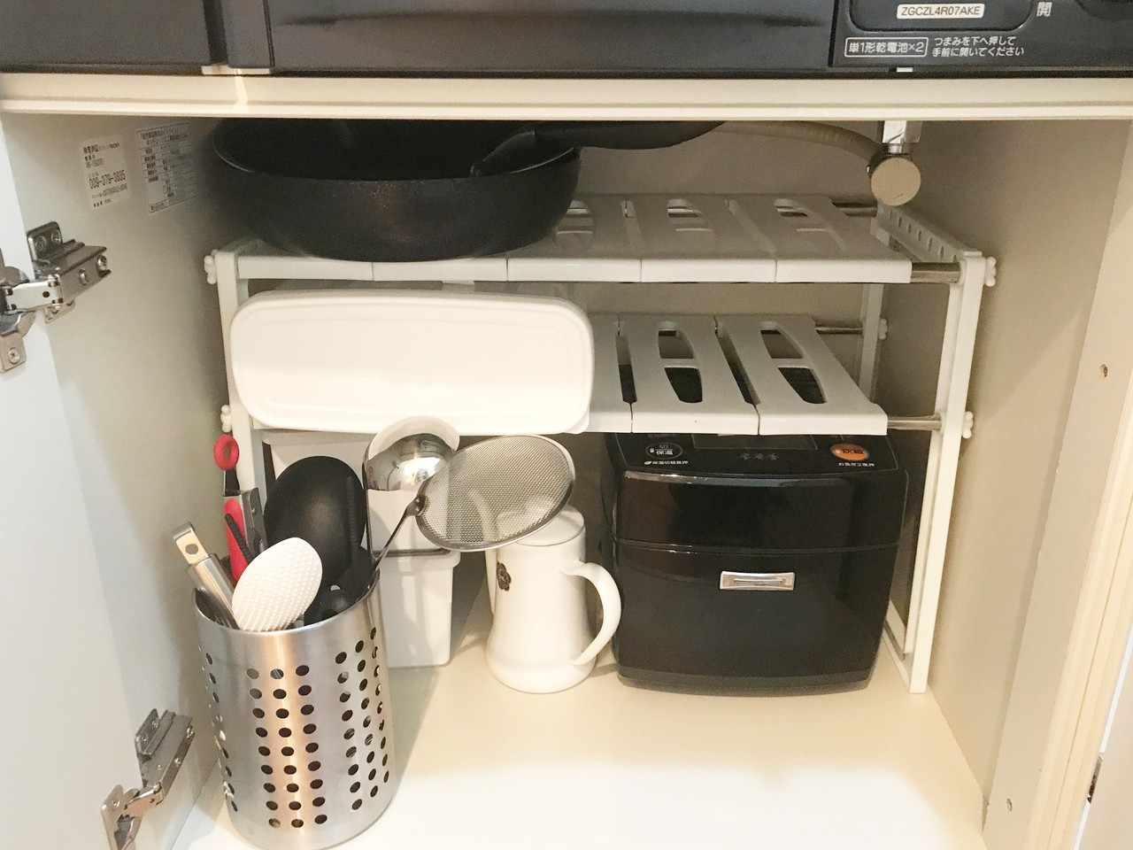 うちから持って行った炊飯器は、コンロ下に収納しましたが、お鍋で上手にご飯を炊けるようになったら炊飯器はいらなくなる予定。