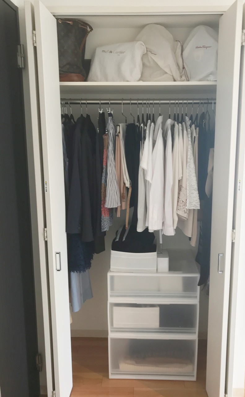 クローゼットにはオールシーズンの洋服、バッグ、ヨガウェアなど、すべて収納できました。